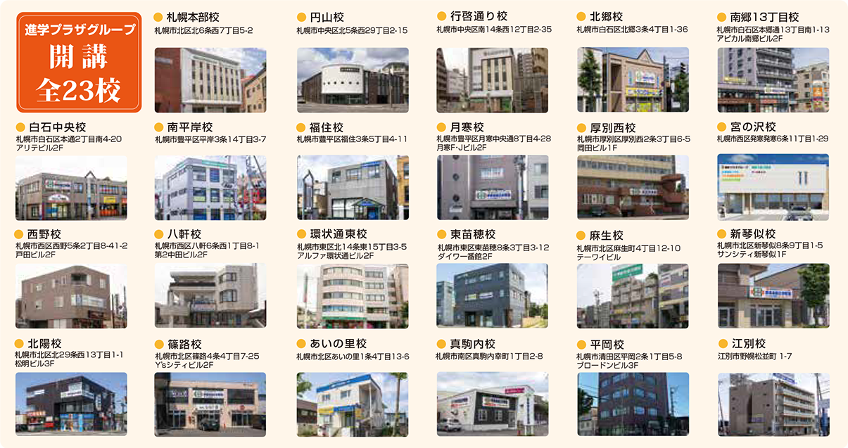 札幌進学プラザ全23校舎 校舎についてはこちらをご確認下さい |